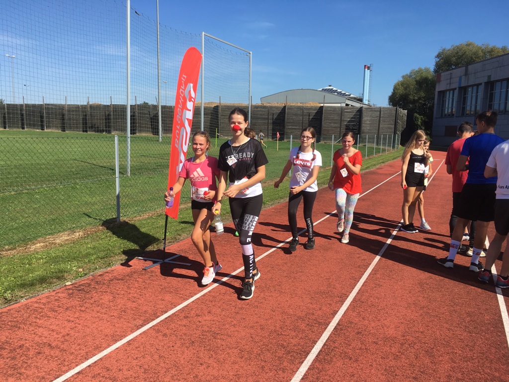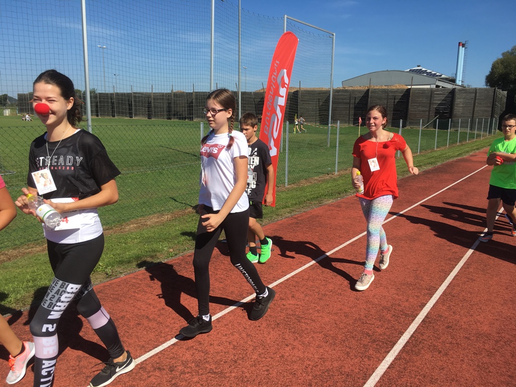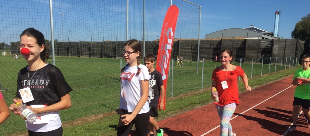 Die Schülerinnen und Schüler der NMS Güssing unterstützen auch heuer wieder die Rote Nasen Clowndoctors durch ihre Teilnahme am Rote Nasen Lauf in Güssing.