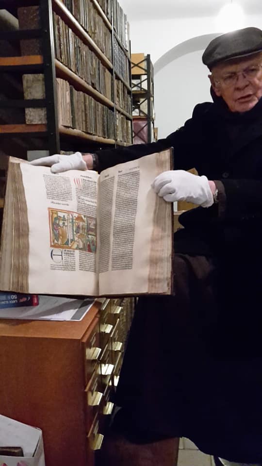 P. Anton, der uns viel Wessenswertes und Interessantes über die Bibliothek erzählte, zeigte uns auch das älteste Buch, ein auf Pergament geschriebenes Messbuch aus der Mitte des 13. Jahrhunderts. Auch viele andere Frühdrucke und Werke von Carolus Clusius durften wir bestaunen.