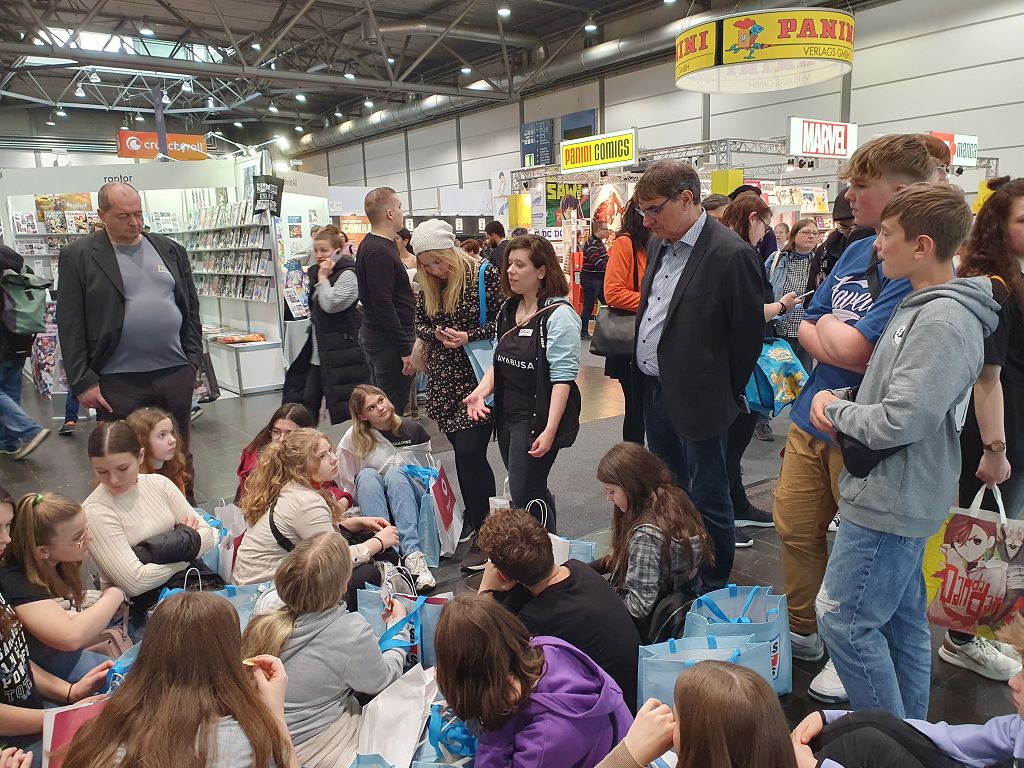 Die imposante Größe und das Angebot der Buchmesse beeindruckten alle Teilnehmer:innen. Eine Autorenlesung, ein Vortrag über Buchhandel und Buchlogistik, der Vortrag über die Entstehung der beliebten Sachbuch-Serie "Was ist was", der Besuch der Manga- und Comic-Halle, aber auch eine Sightseeing-Tour durch Leipzig machen diese Reise unvergesslich. Ein herzliches Dankeschön an die Buchhandlung Desch-Drexler für die perfekt organisierte Reise und die sehr kompetente Betreuung vor Ort.