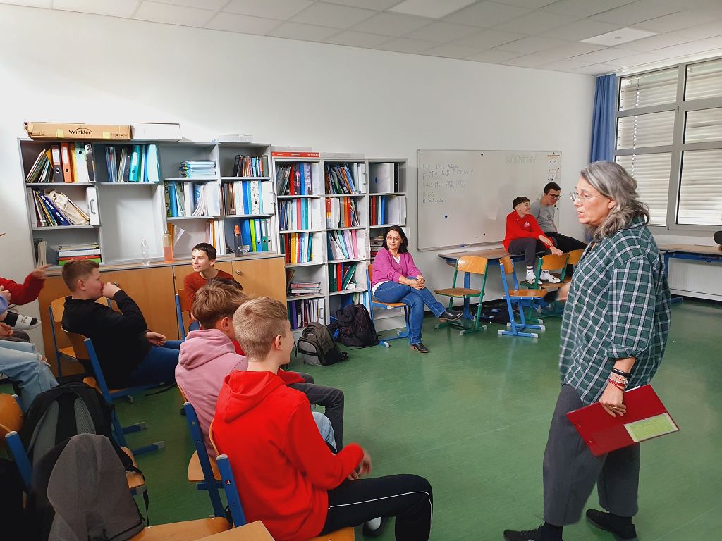 Vom 20. bis 22.2.2024 fand ein jeweils eintägiger Workshop mit den 4. Klassen statt. Die Basis dafür bildete die ungewöhnliche Lebensgeschichte von Frau Daniela Ebenbauer-Dadieu. Die Tochter eines Holocaust-Überlebenden und Enkelin eines NS-Gauhauptmannes erzählte sehr Persönliches aus dem Leben ihrer Familie und rief bei den Schülern große Betroffenheit hervor.