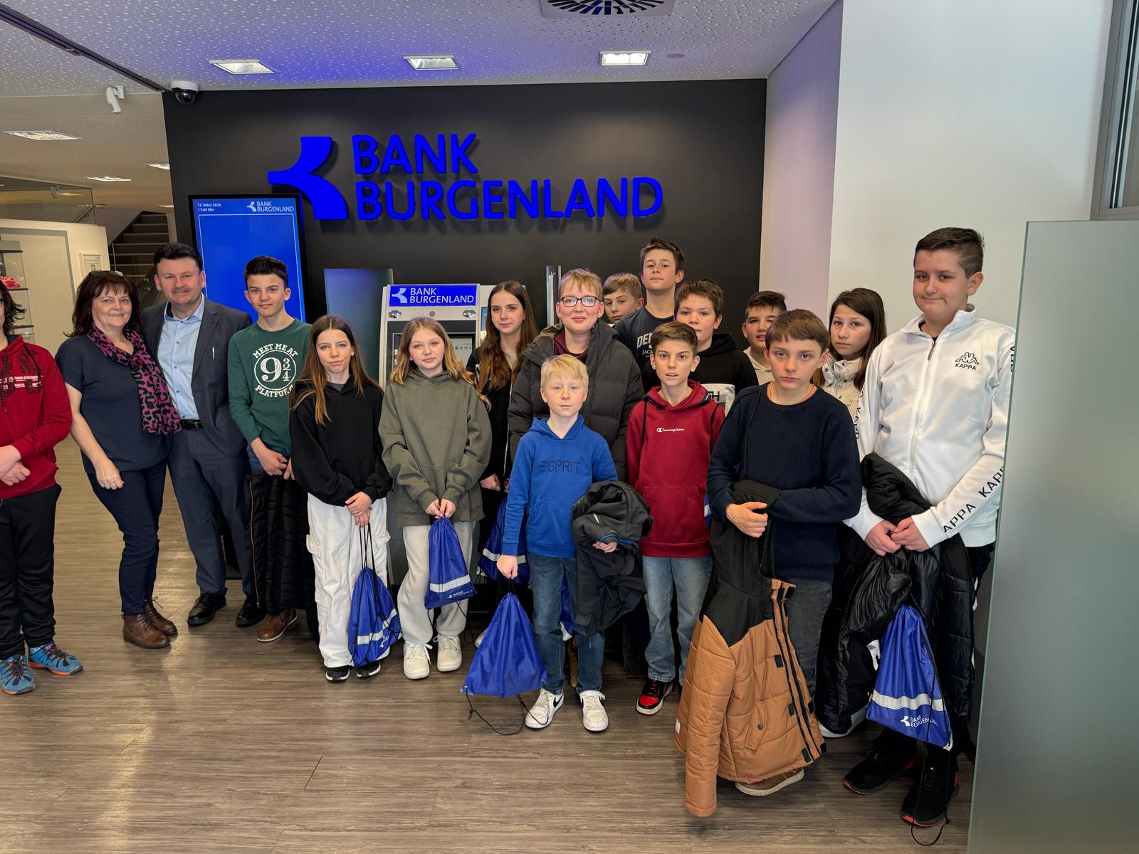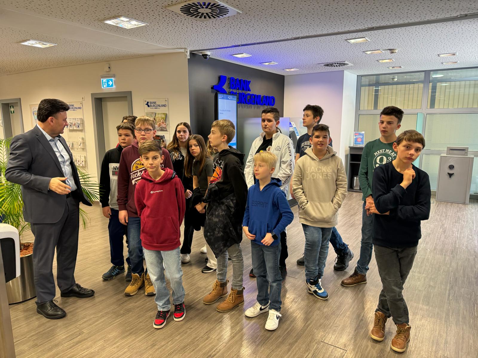 Herr Direktor Tukovics und sein Team luden uns in die Bank Burgenland in Güssing ein. Während unseres Aufenthaltes bekamen die Schüler*innen vielfältige Einblicke in den Alltag und die Arbeitsweise einer Bank. Sie durften unter anderem den Tresorraum, den Sitzungssaal und das Büro des Bankdirektors besichtigen.