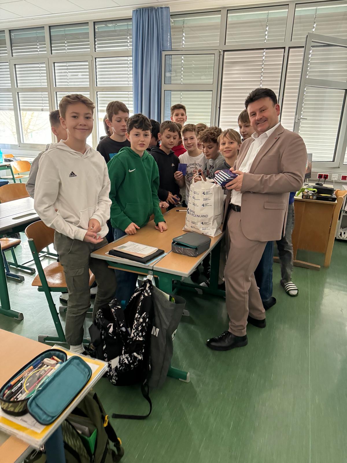 Für einen Vortrag im Rahmen des Themas "Banken und Geld" besuchte der Bankdirektor Herr Tukovics Gerhard die 2. Klassen. Die Schüler*innen erhielten Informationen über den Aufbau einer Bank, die verschiedenen Sparmöglichkeiten und Zahlungsformen.