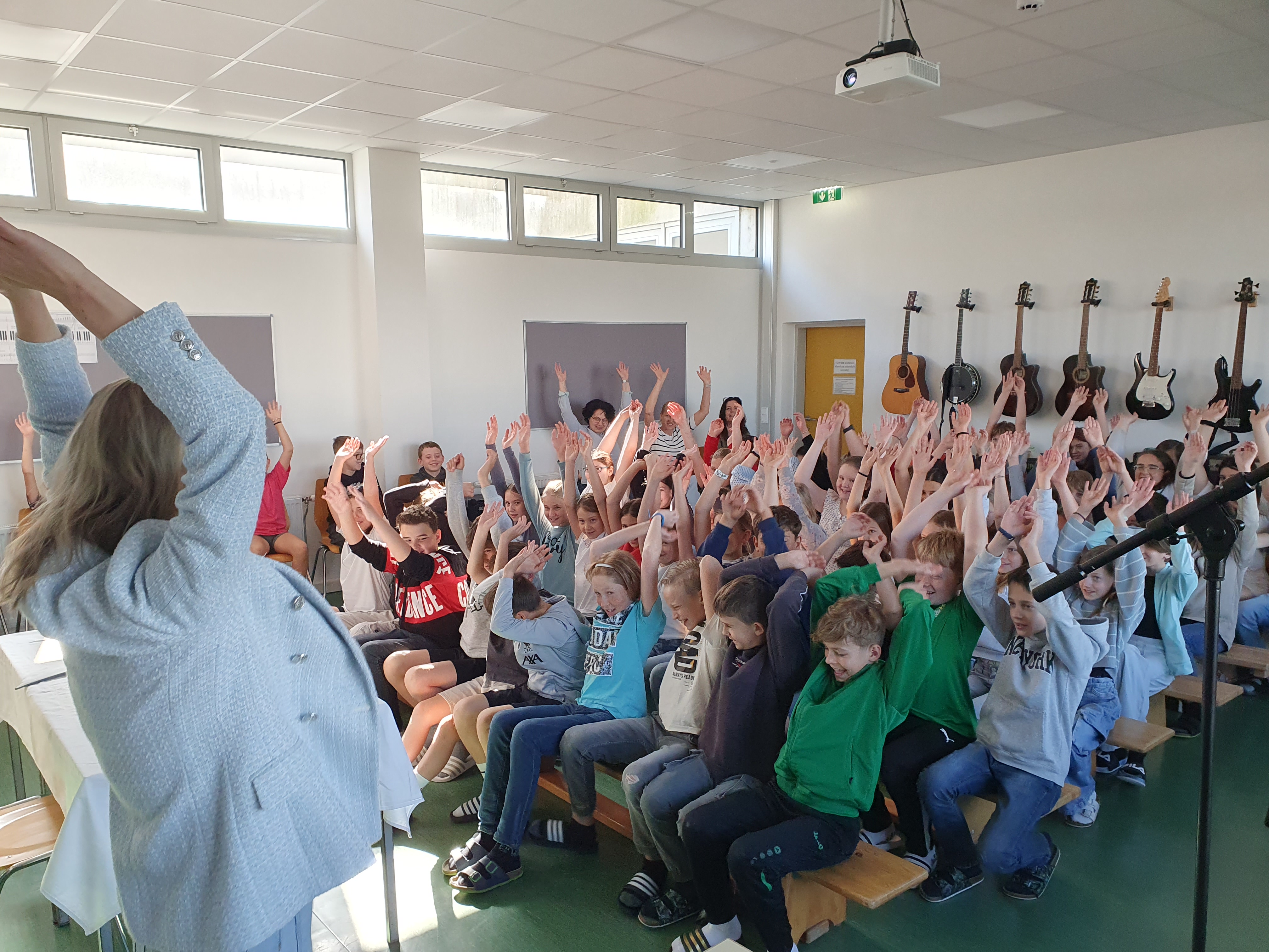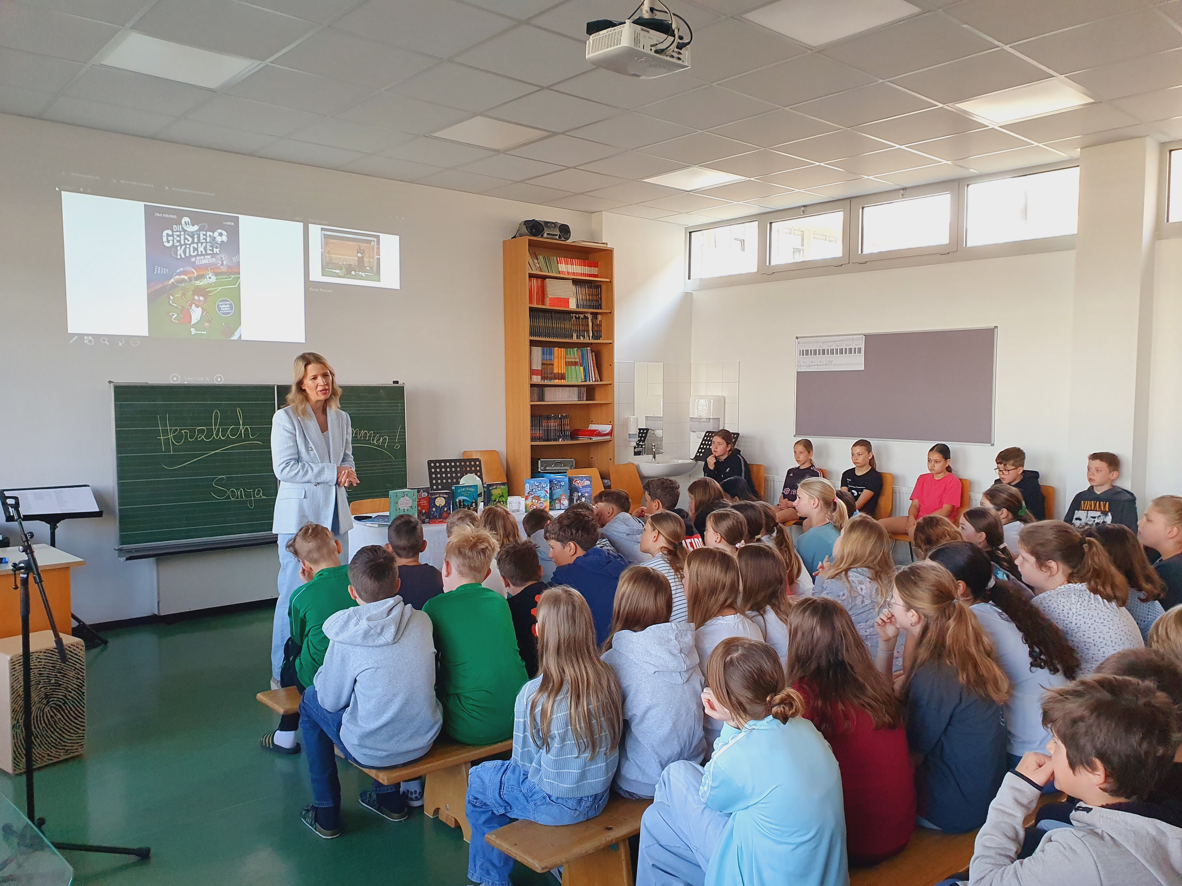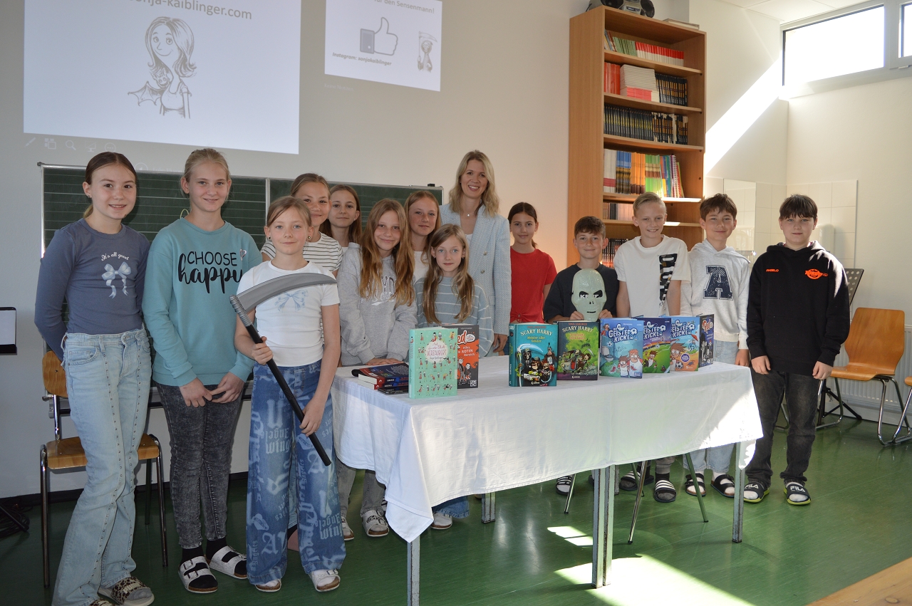 Am 28. April 2025 durften die 1. und 2. Klassen einen besonderen Gast begrüßen: die bekannte Kinder- und Jugendbuchautorin Sonja Kaiblinger. Im Rahmen der Leseförderung las sie den ersten Klassen aus ihrem Buch „Geisterkicker“ und den zweiten Klassen aus der Reihe „Scary Harry“ vor - eine perfekte Mischung aus Humor, Grusel und Abenteuer.